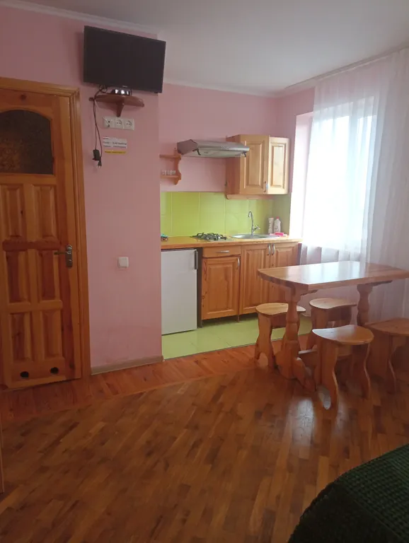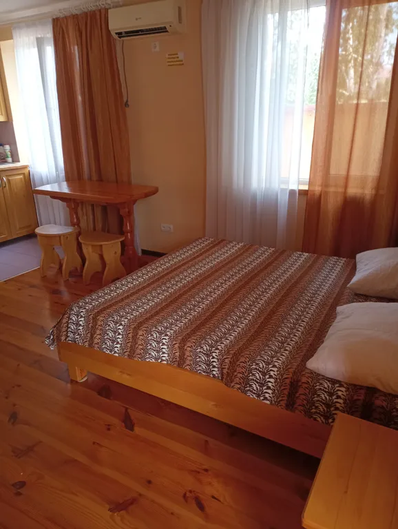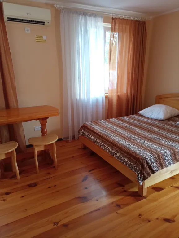Номер рассчитан для гостей от 2-х человек. В номере имеется кухня, оборудованная всем необходимым для приготовления пищи. Холодильник. Кондиционер, санузел (душ, унитаз, раковина) в номере все выполнено из массива натурального дерева (мебель, пол, кухня). До пляжа 7 минут спокойной ходьбы. Есть оборудованный пляж и дикий. Протяжённость дикого пляжа 2 км, куда можно уединиться для с покойного отдыха и насладиться морским прибоем. Хорошая транспортная развязка. В пешей доступности магазины, рынки, столовая, кафе. Проживание с животными с согласия хозяина