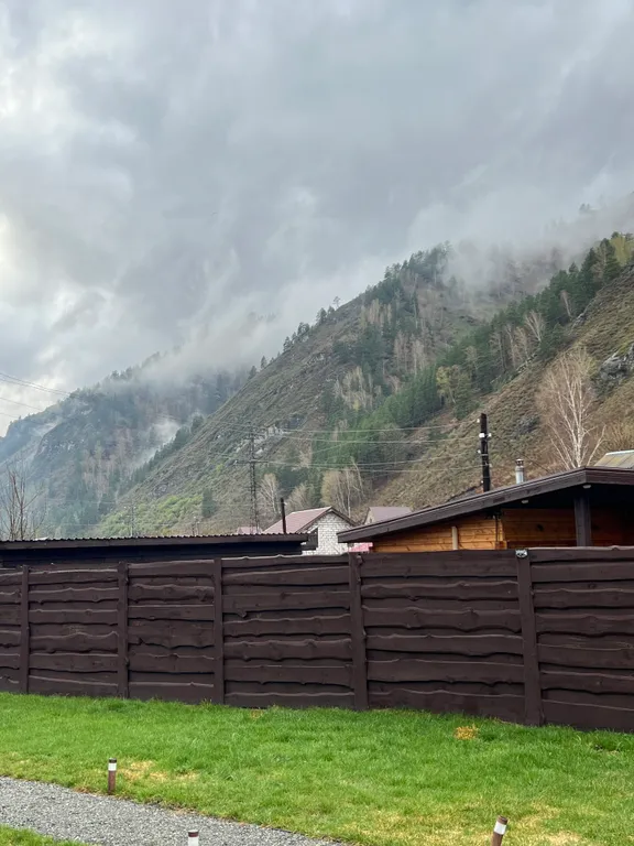 Наши домики находятся в тихом месте с. Манжерок. Напротив нас величественная гора, лес