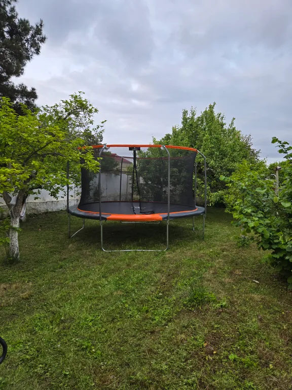 Установили батут 4,66 метра диаметр до 200 кг со щитом для аэробаскетбола.
