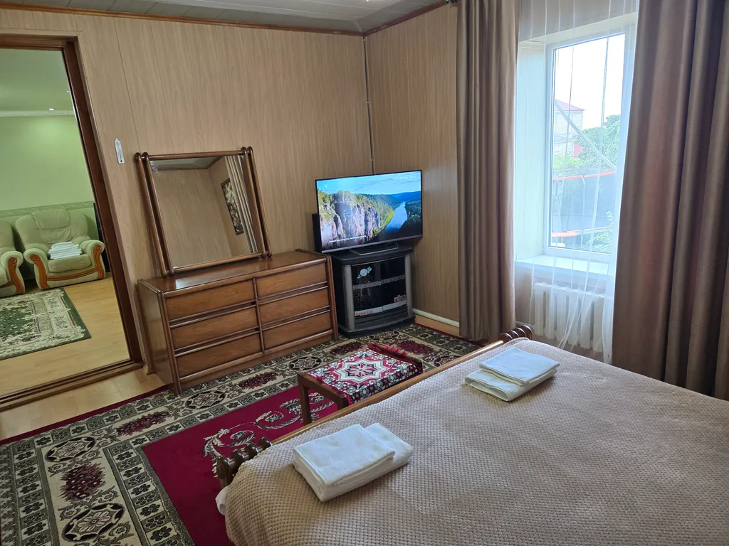 Техника: стиральная машина, кофе машины трёх видов, хлебопечка автомат, холодильник , микроволновка, кулер с родниковой водой, посудомоечная машина, электрогриль, электродуховка, мангальная зона с печкой для казана, барбекю , всё необходимое для приготовления шашлыков, телевизоры Smart TV в каждой комнате, домашний кинотеатр с караоке, интернет проводной и WiFi , 50 метров от моря, чистое море, место тихое, пляж очищаем готовым каждый год, песок прекрасный, крытый гараж с автоматическими воротами для машины. Газовая колонка, электрический бойлер, газовое паровое отопление, генератор с автозапуском на случай отключения света. От центра города Дербент до дачи 9,5 км, из них 8,5 км асфальтированная, 1 км гравийная дорога, сам доезжаю от своего дома в городе до дачи за 13 минут, до ближайшего супермаркета 1,5 км, доступно такси по вызову, доставка еды, есть электрический скутер для поездок за покупками, вода горячая (газ и электричество), холодная круглосуточно, есть резервный бак на крыше на 1,5 т. Размещение до 6 взрослых гостей!!! Чай, кофе, сахар и прочее.