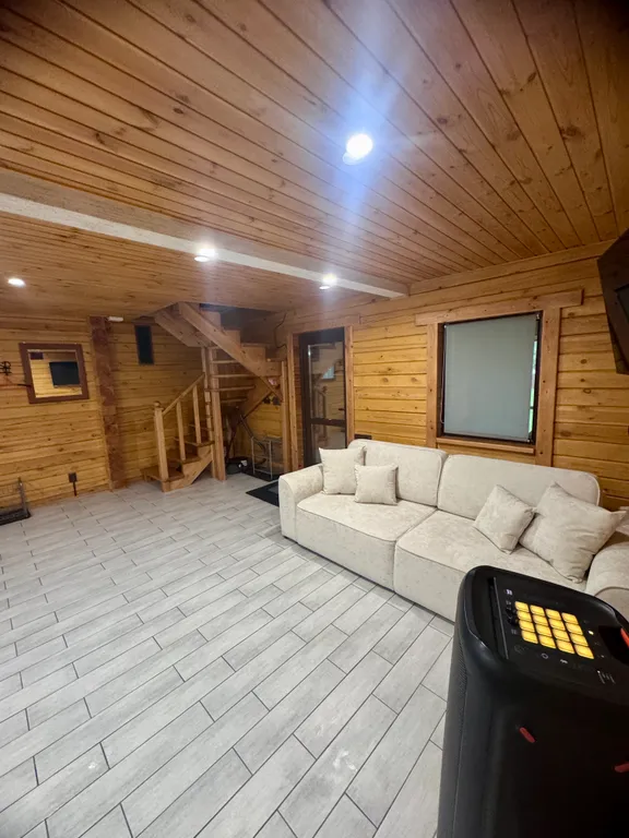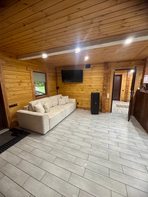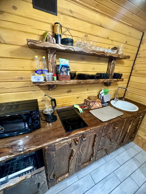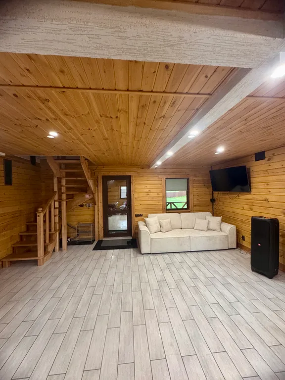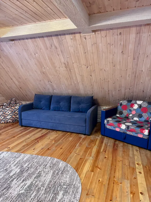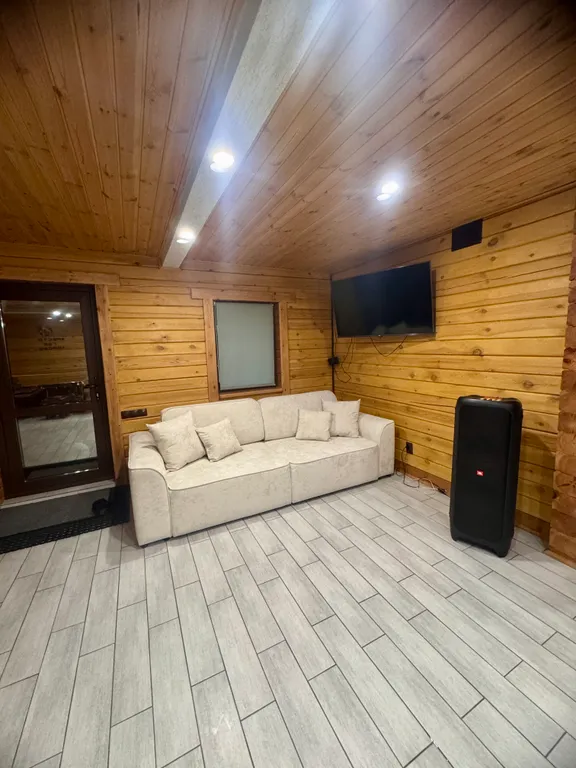 Пол на 1 этаже с подогревом (отапливается в зимний период)! Второй этаж: балкон, три комнаты. Вся мебель деревянная, выполнена из массива, есть все необходимое: полотенца, средства гигиены, постельные принадлежности, посуда, бытовая техника, телевизор, wi-fi и главное отличная музыка! Jbl 1000!