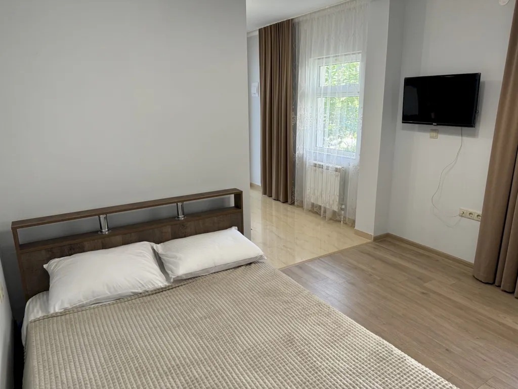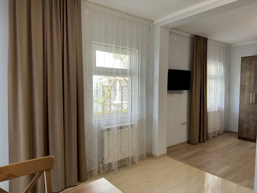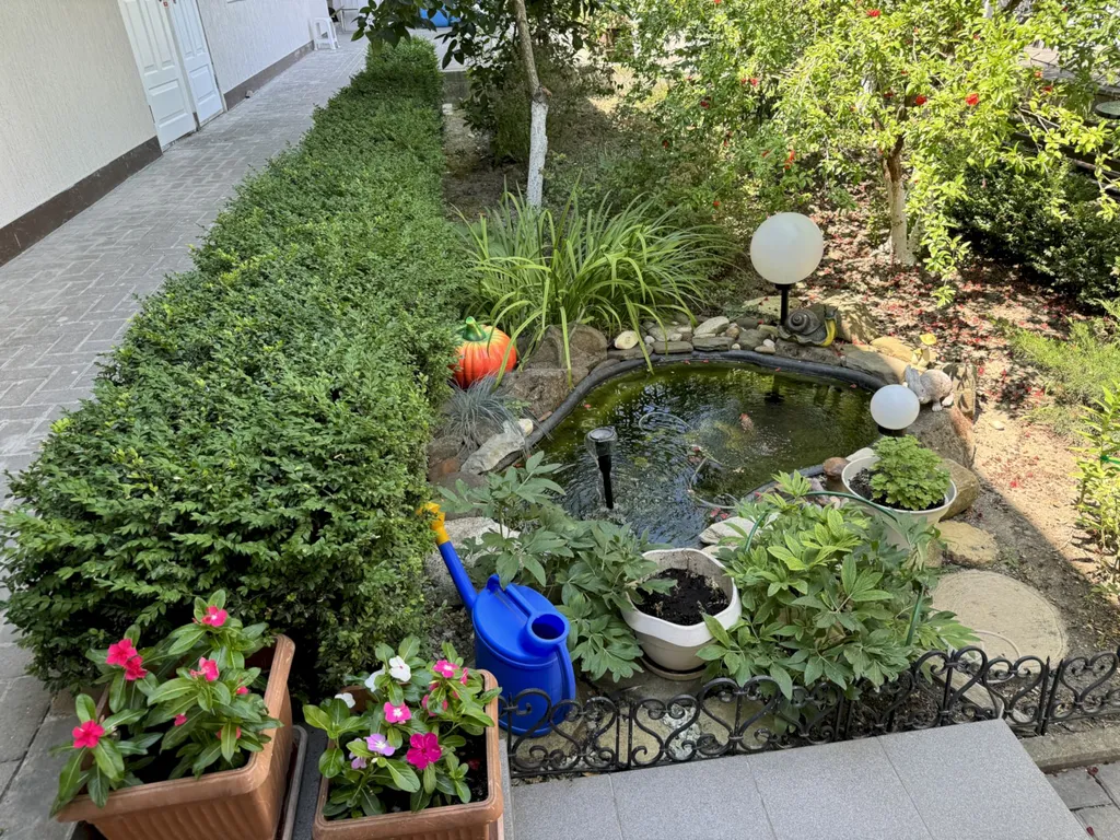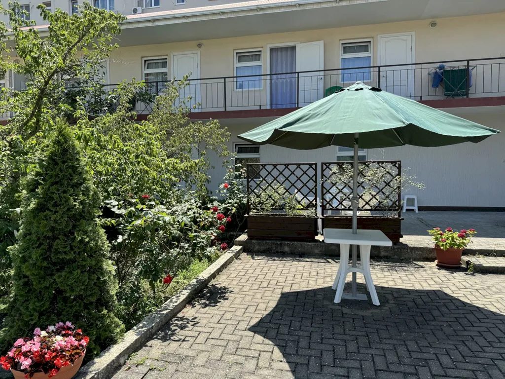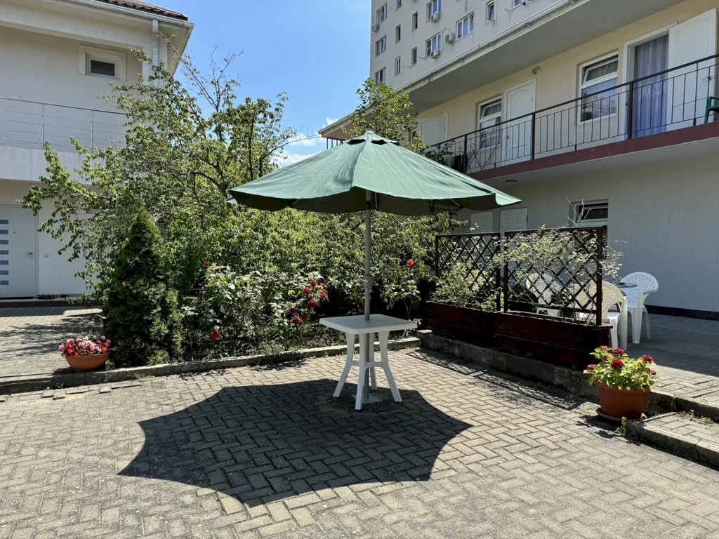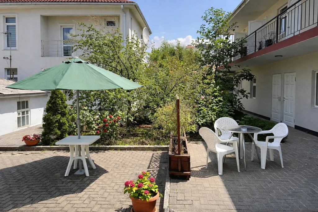 Территория двора в общей зоне пользования, но для сдаваемого номера есть свой стол и стулья во дворе, которыми больше никто не пользуется. Зелёный дворик, есть живой уголок с рыбками. Парковка рядом с домом. Гостям предоставляется постельное бельё и полотенца.