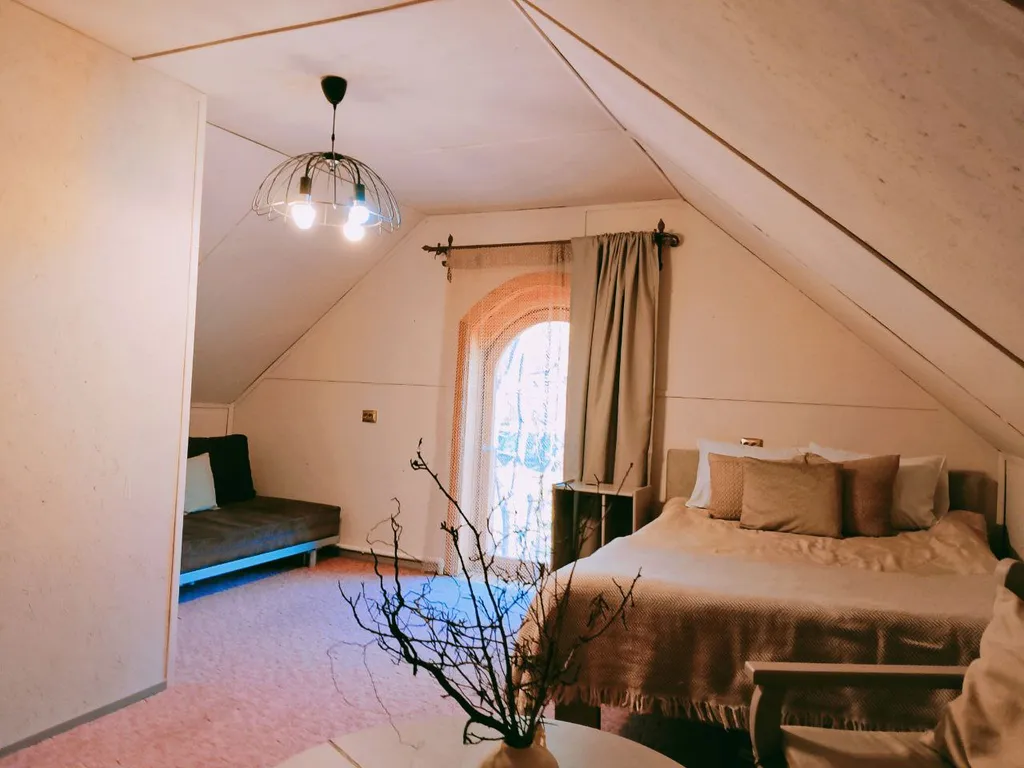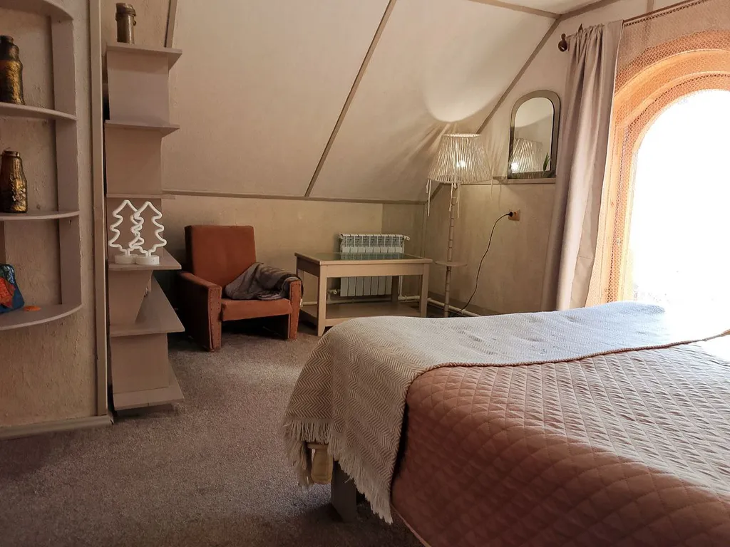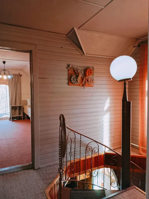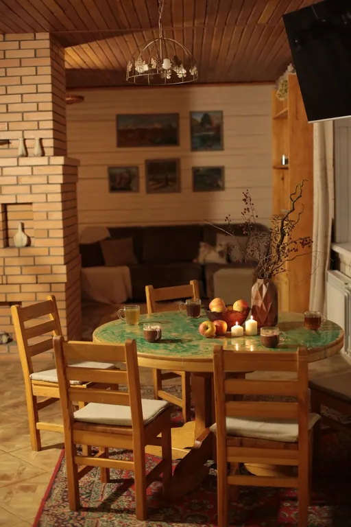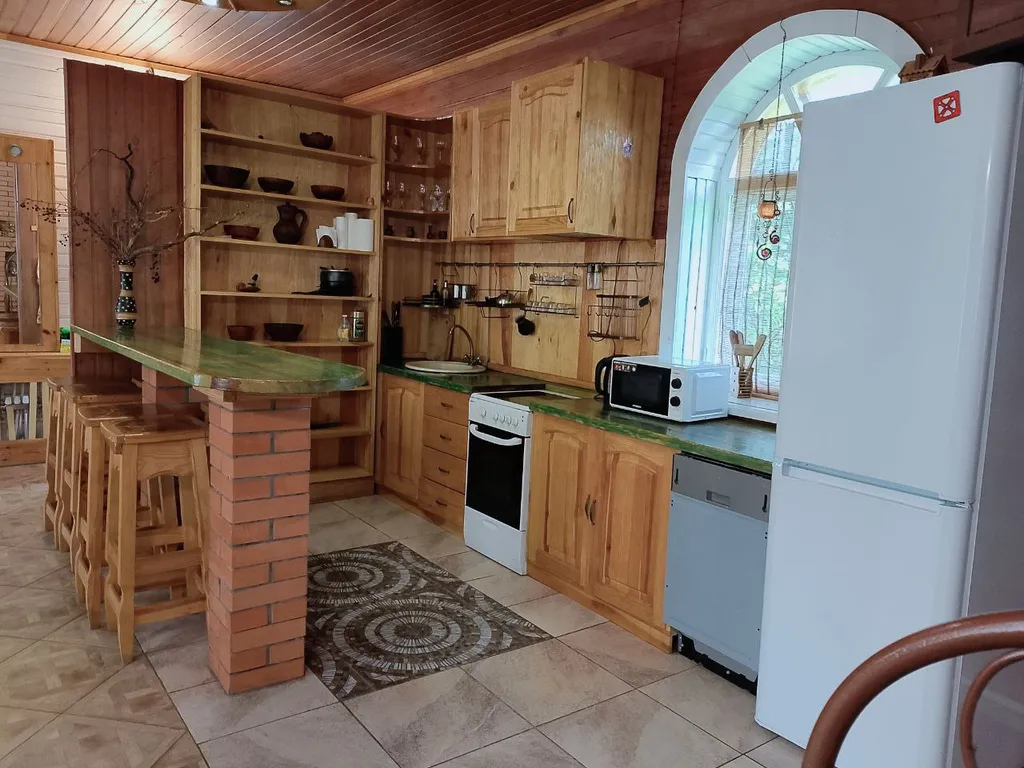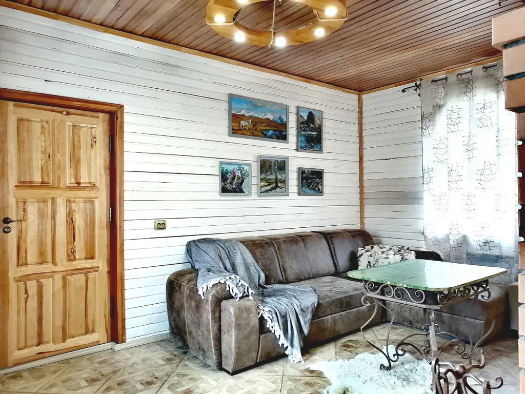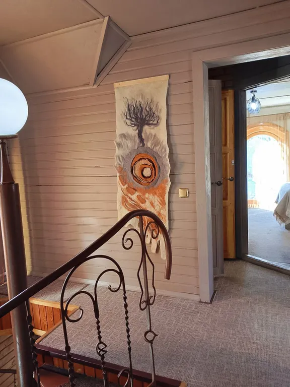 Дом в два этажа с дизайнерской отделкой и деревянной мебелью ручной работы. Уютный теплый дом со спокойной душевной атмосферой. Основных спальных мест 8 и 2 дополнительных.
