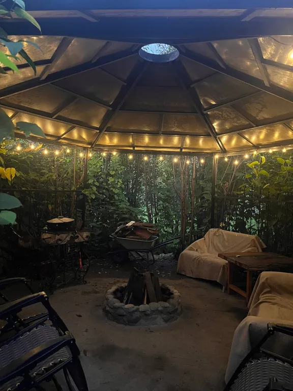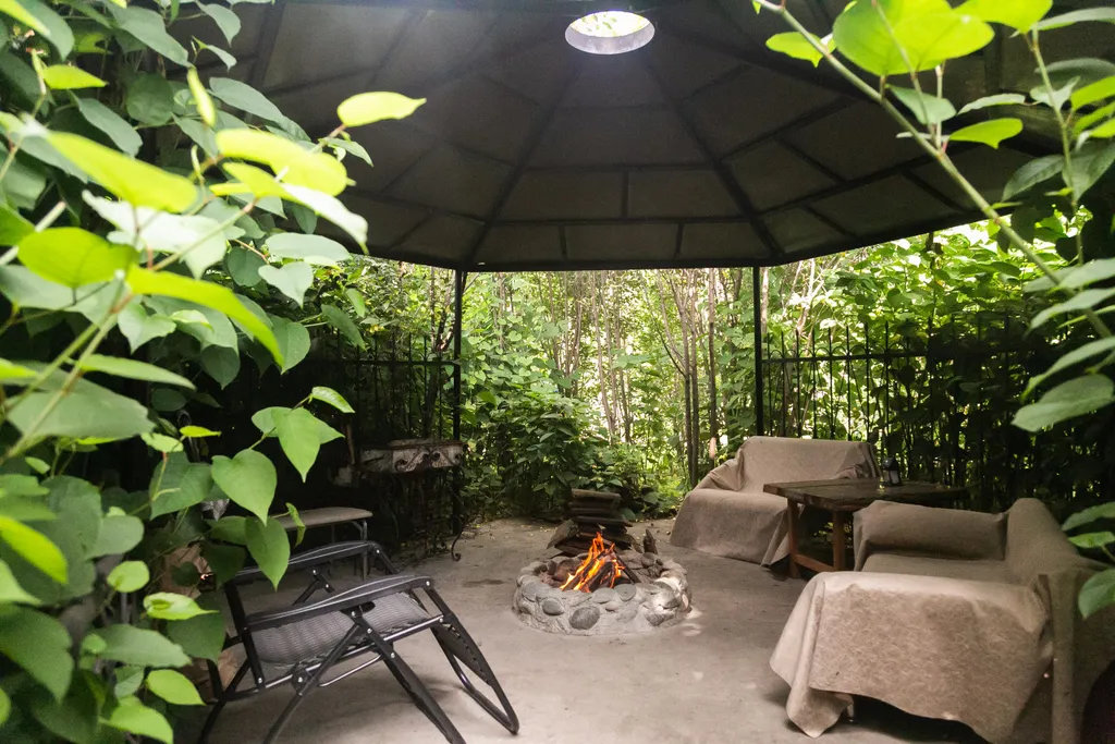 Мангальная зона и кострища: казаны, шампуры, решетки и дрова прилагаются.