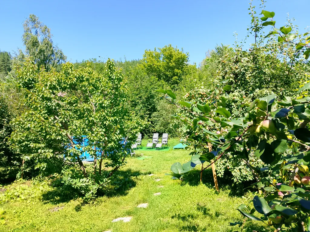 Вид из окон: на лес, гору, двор и сад.