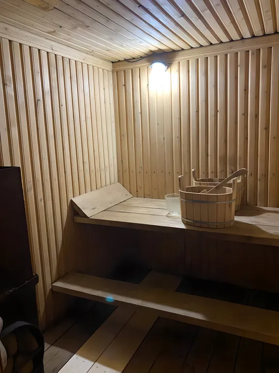 Баня: с березовыми вениками.