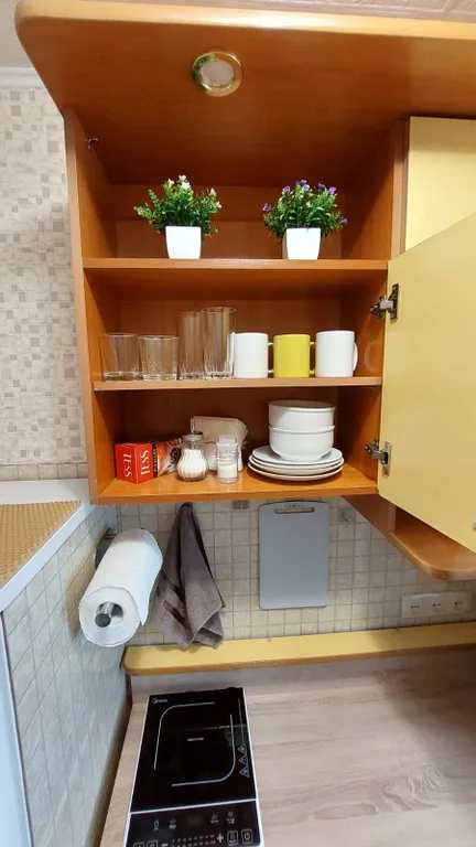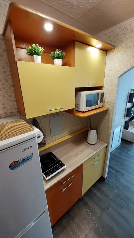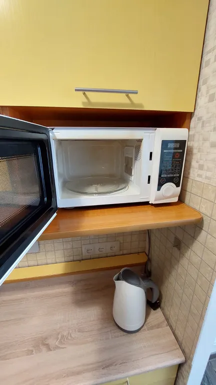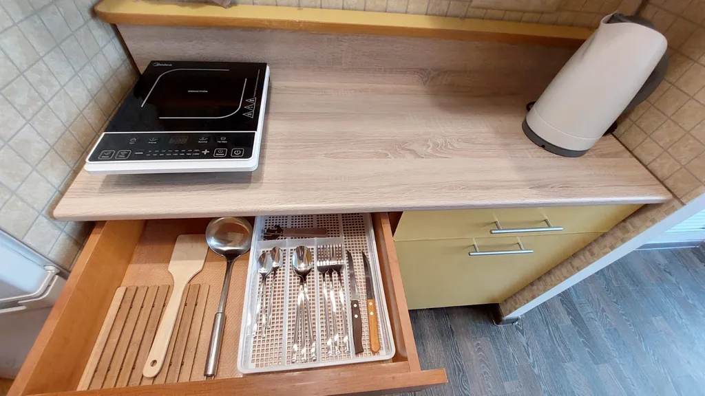 - Холодильник, индукционная плита, микроволновка, электрочайник