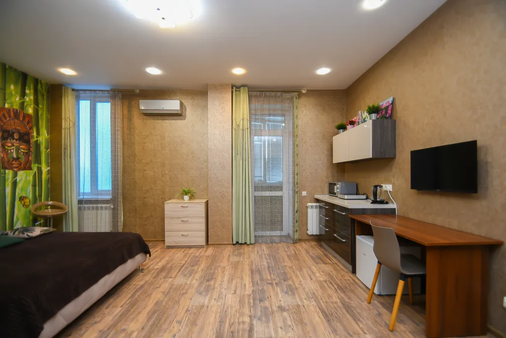 Уютные и стильные апартаменты-студия для комфортного отдыха до 2 человек, современный ремонт, собственная сауна и джакузи — отличный способ перезагрузиться!