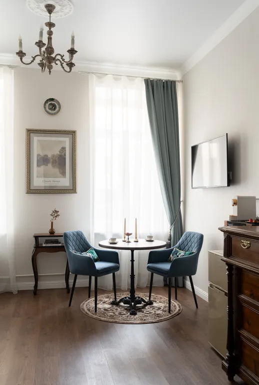 Новая студия в Запасном доме дворца князя Владимира на Миллионной улице — это уникальное сочетание исторического шарма и современного комфорта. Антикварные детали интерьера и полная тишина двора создают особую атмосферу Петербурга.