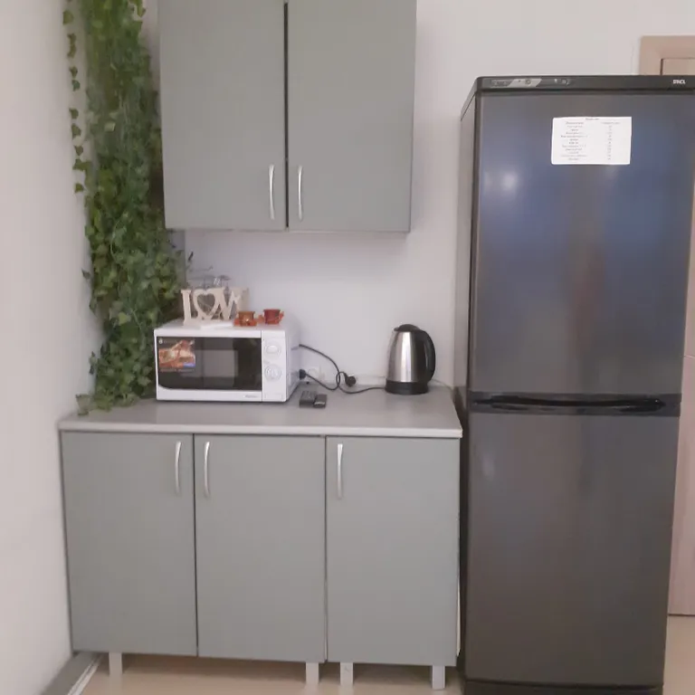 Посуда, столовые приборы. Нет плиты для приготовления пищи и стиральной машины.