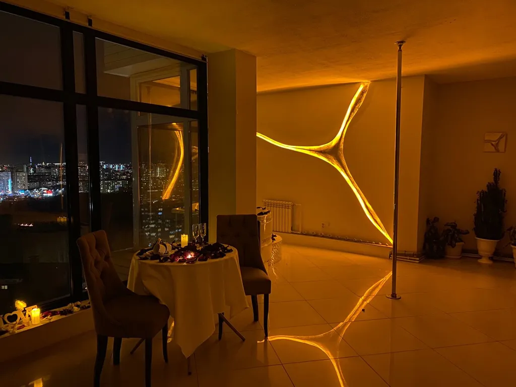 Апартаменты находятся в 17-этажном доме, на 17-м этаже с панорамным видом на город и окрестности.