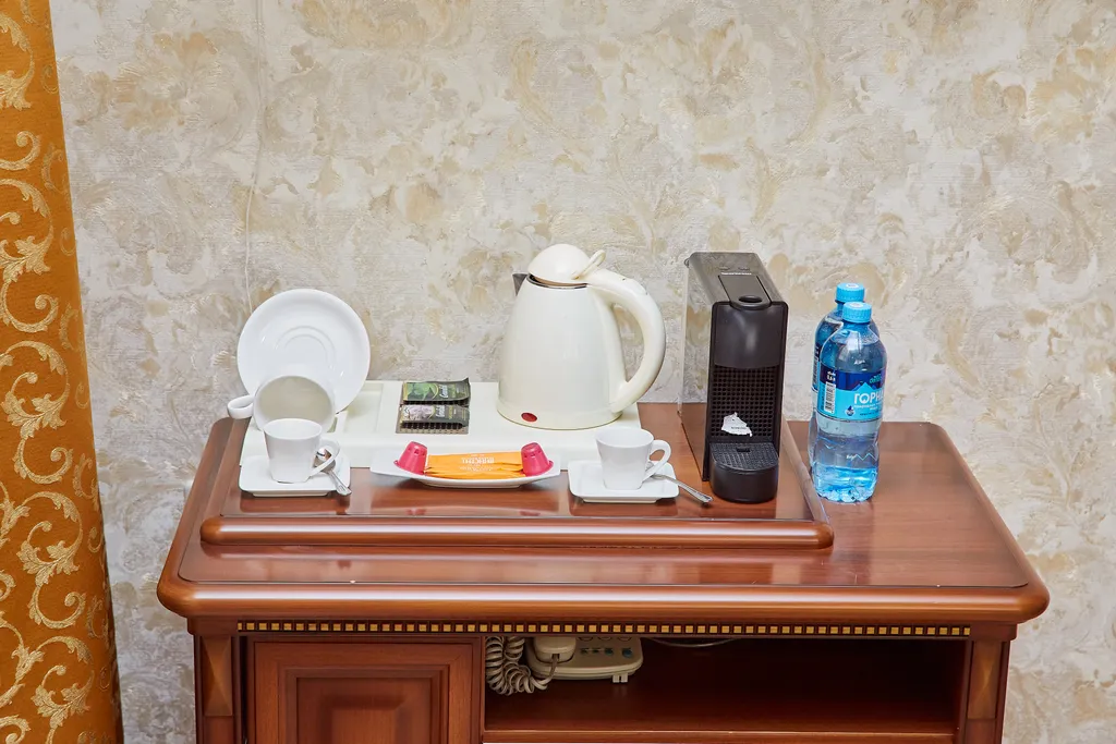 2 бутылки воды при заезде, набор чая и кофе.