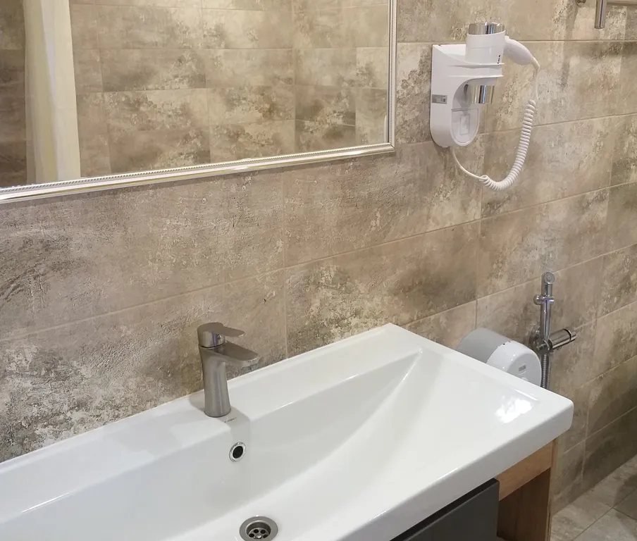 Возможно размещение с животными. Доплата для больших пород собак 500 рублей за питомца.