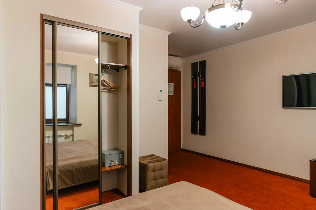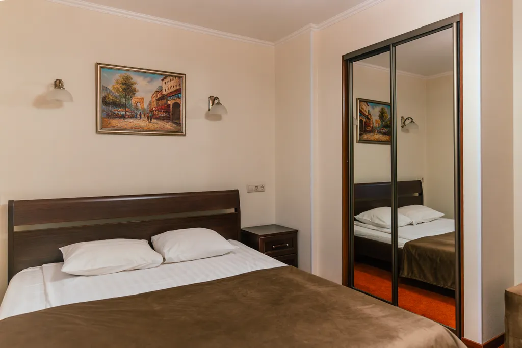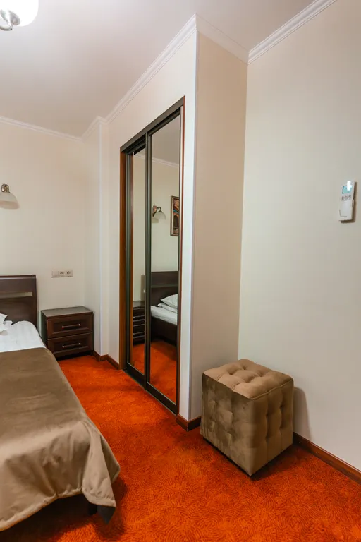 Гостиничный номер повышенной комфортности с кроватью кинг-сайз и собственной ванной комнатой с джакузи. Дети до 3 лет размещаются бесплатно без предоставления дополнительного места.