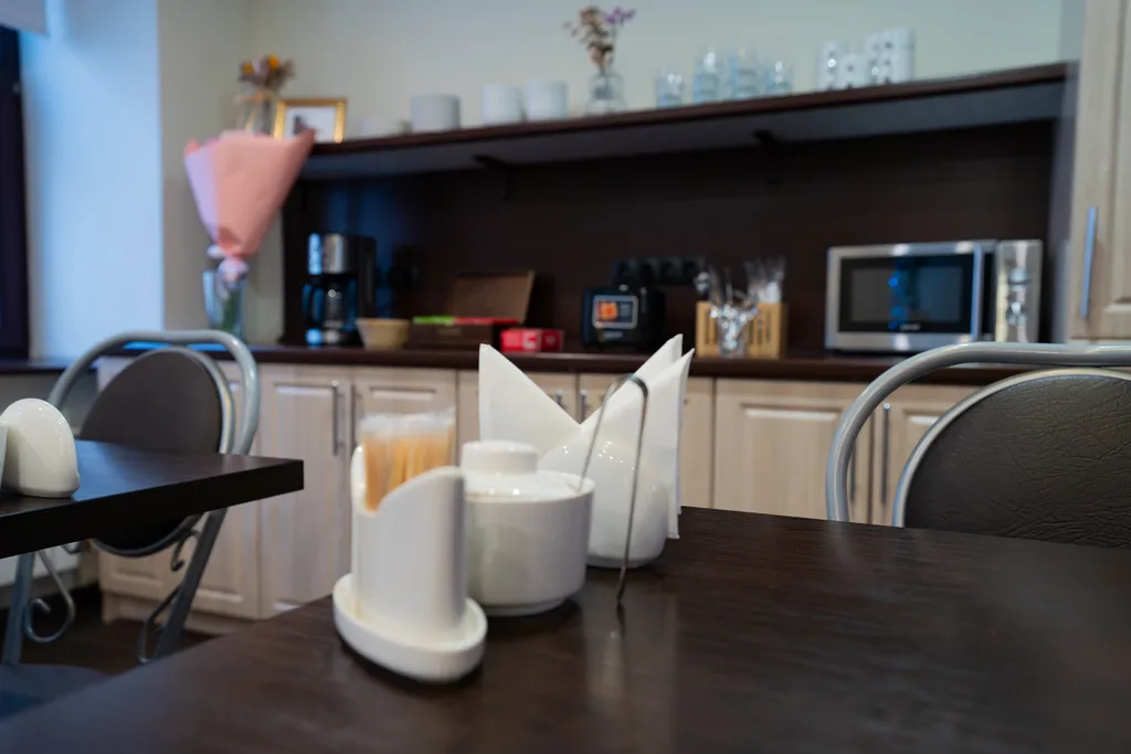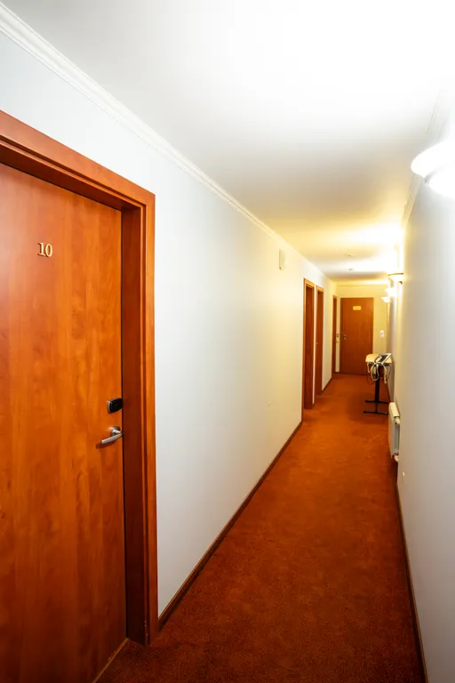 В коридоре имеется гладильная доска с утюгом, микроволновка, кулер с питьевой водой.
