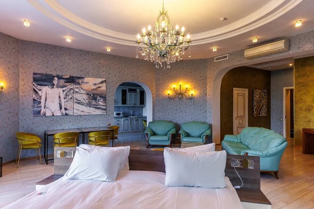 В номере: 1 двуспальная кровать, 1 односпальный диван.