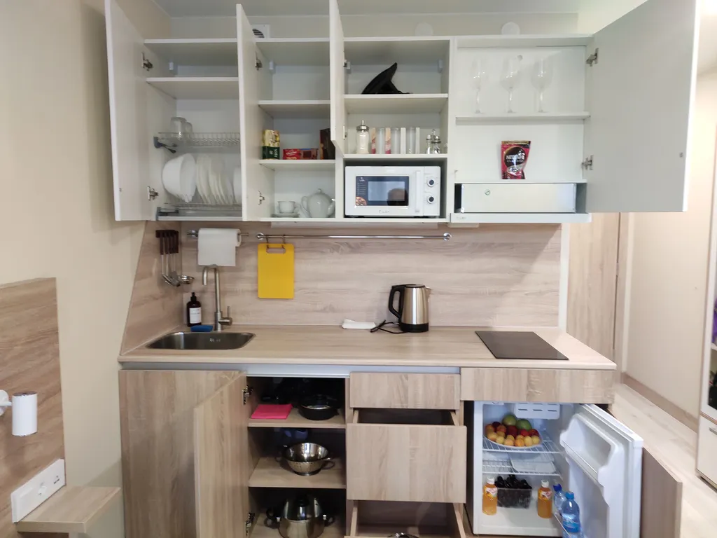 Отличная студия получается всегда, когда ты её сделаешь удобной и функциональной, как для себя, с теплом и уютом, где есть всё необходимое, чтобы вкусно приготовить и хорошо отдохнуть!