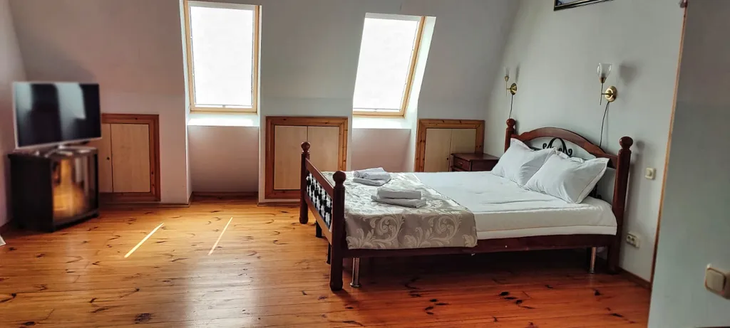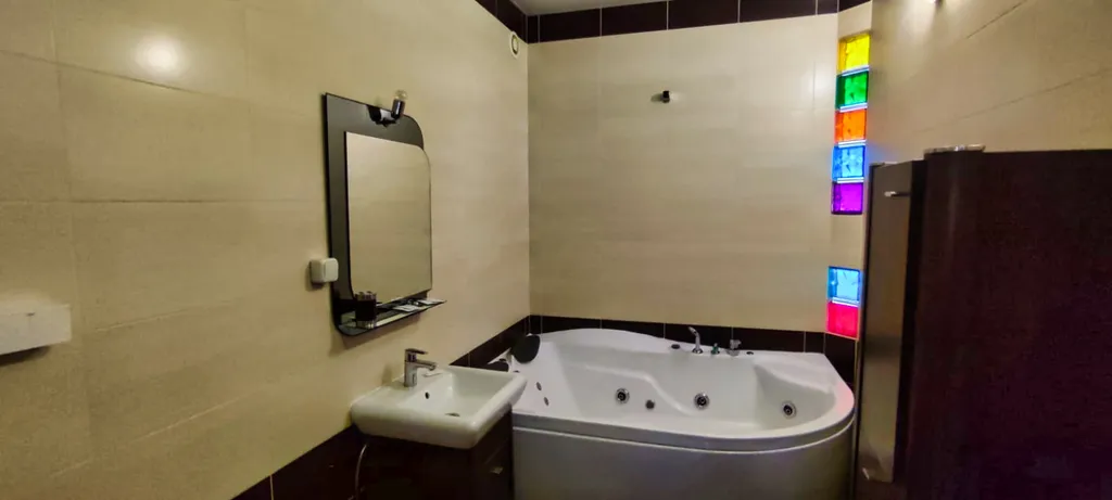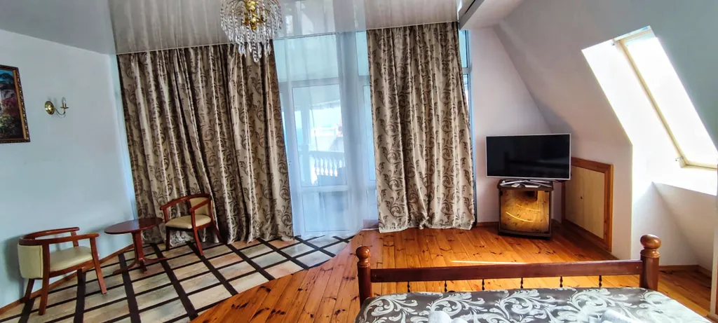 Двухкомнатный номер мансардного типа. Расположен на четвертом этаже Номер отличается простором, великолепным видом на море. В номере есть джакузи с гидромассажем, холодильник, кондиционер, фен, чайник, в каждой комнате телевизор смарт. Престижная мебель.