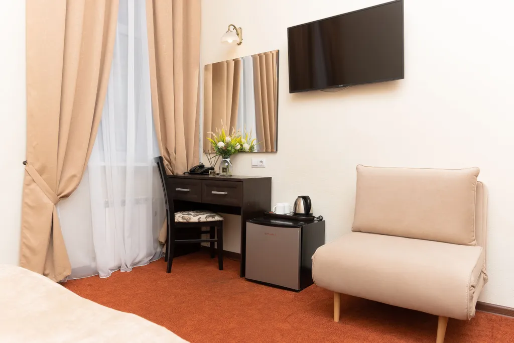 Просторные современные двухместные номера. По запросу предоставляется дополнительная раскладная кровать.
