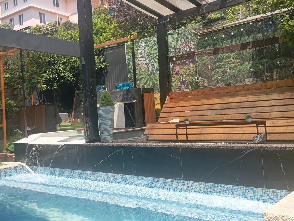 Где вы просыпаетесь под пение птиц и журчание воды в водопаде нашего бассейна с тёплой водой и джакузи.