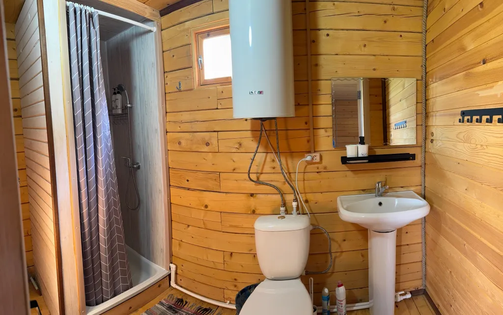 Ванная комната, с/у, горячий душ, раковина, полотенца, туалетная бумага, мешки для мусора, жидкое мыло, гель д/душа, шампунь, фен.