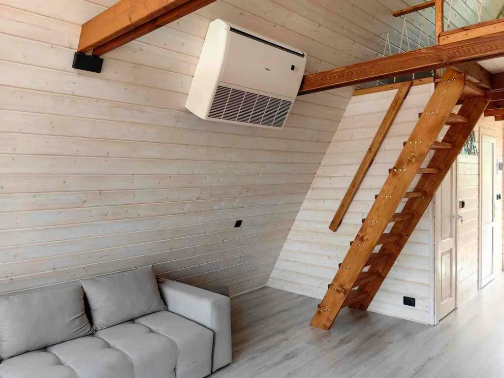 Также в домике имеется второй спальный этаж, на который ведёт лестница, по ней маленьких детей тоже необходимо сопровождать.