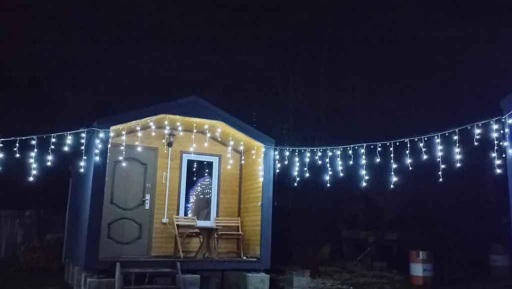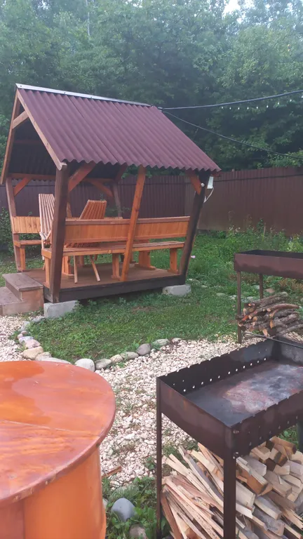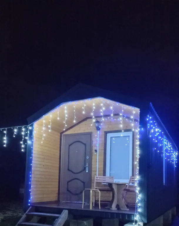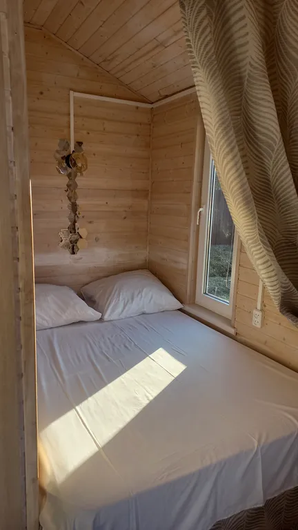 Вы можете удобно расположиться на веранде и встречать закат, для вас на территории беседка и мангал, костровая зона, настольные игры, волейбол и бадминтон, батут. Можно заказать глинтвейн! Для вас в домиках комфортная кровать (не раздвижная) с удобным матрацом для двух человек и раздвижное полноценное место (диван). Домик свободной планировки, в нем есть все необходимое: холодильник, микроволновка, чайник, посуда, телевизор, фен, постельные принадлежности.