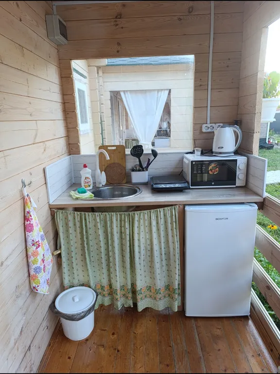Дома оборудованы всем необходимым: 2-спальная кровать, 2-ярусная кровать для детей, возможно размещение 1 дополнительного места, сплит-система (тепло, холод), TV на Андроиде с подписками, Wi-Fi, кухонный гарнитур, эл. чайник, холодильник, эл. плитка, микроволновка, посуда, полотенца, фен, сушилка для белья.