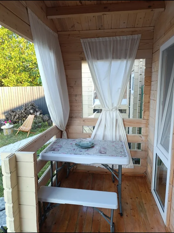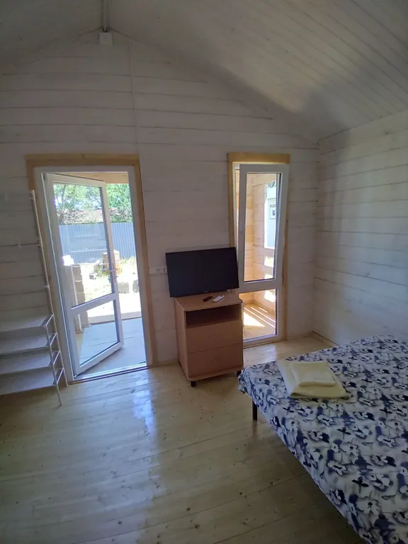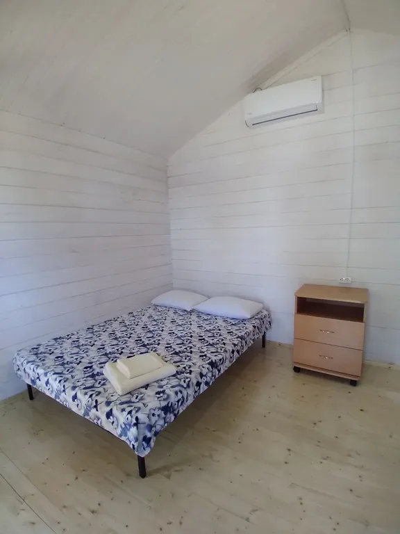 В домике 4 спальных места + дополнительное место (раскладушка, платно).