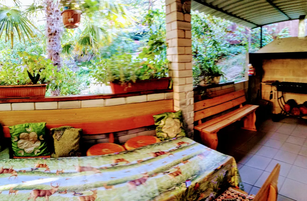 Летние качели, качели - кокон, парковка для двух автомобилей. Центр Гурзуфа к морю 7 мин. Неторопливой ходьбы по историческим улочкам Гурзуфа (местность гористая), кафе, магазины, рынки 5 мин. Уборка и смена белья каждые 5 дней.