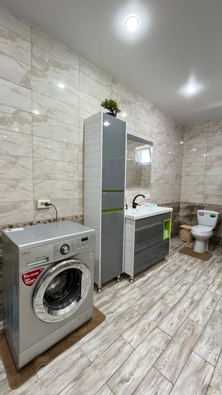 Санузел совмещен с душевой, сушка для белья, туалетные принадлежности, стиральная машина, фен, утюг.
