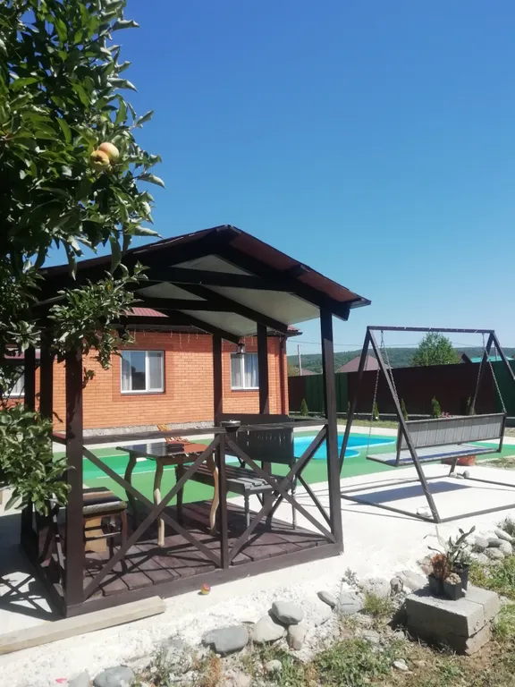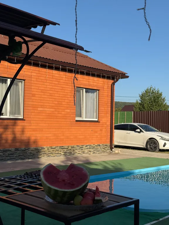 На территории можно припарковать до 5 машин. Мангал, казан, шампура — всё это у нас есть.