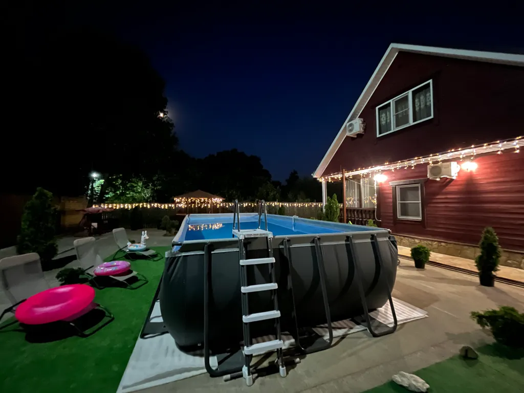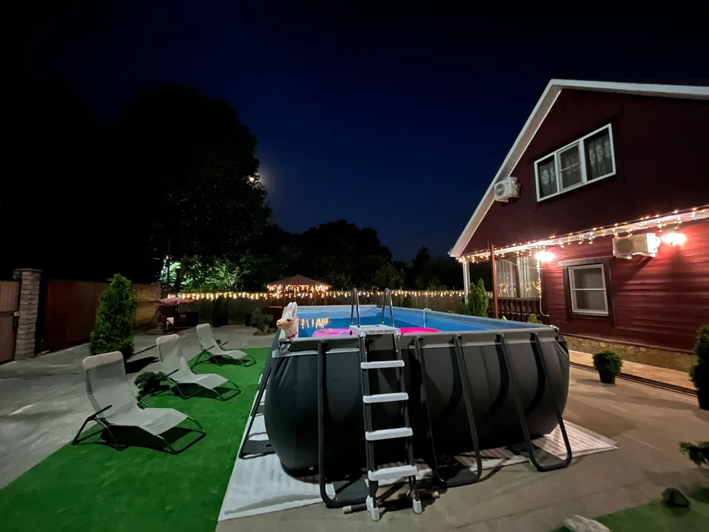 Во дворе имеется беседка и крытая мангальная зона, большой бассейн никакие осадки не станут помехой вашему отдыху.