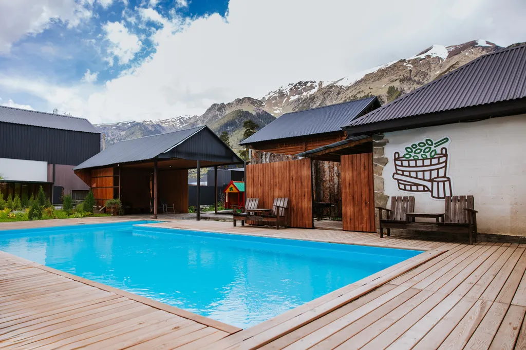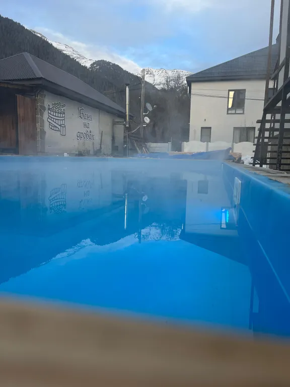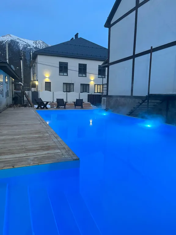 На территории отеля работает всесезонный бассейн с подогревом, баня на дровах, кафе.