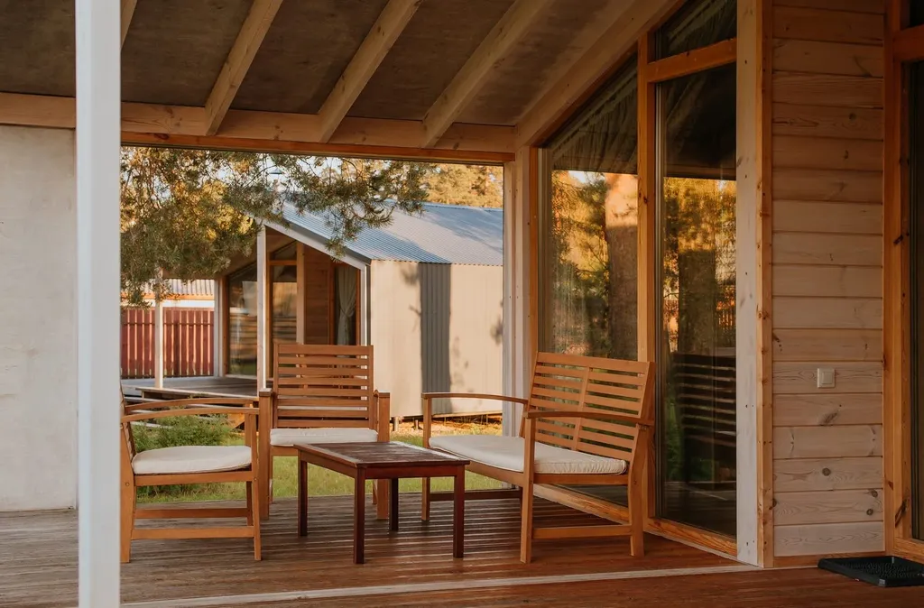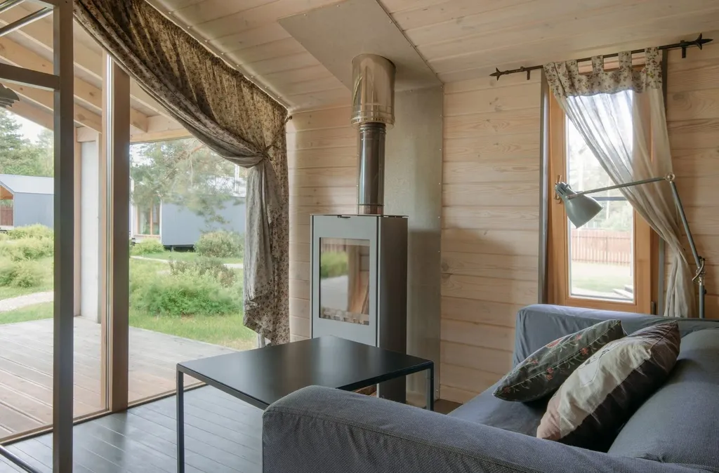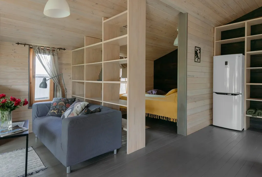 В доме находится одна комната-студия с двуспальной кроватью (160х200 см), а также всё необходимое для комфортного отдыха и приготовления еды. При необходимости в этой зоне можно установить дополнительную раскладушку или детскую кроватку.