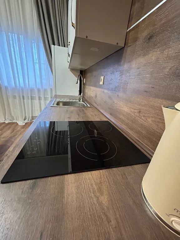 С двуспальным диваном, телевизором нтв+, где вы сможете расслабиться и пообщаться в кругу друзей.
