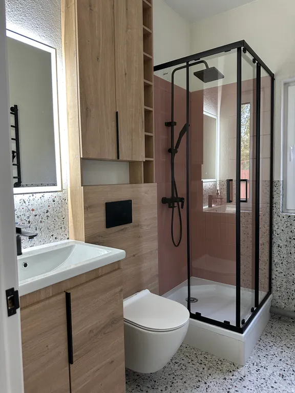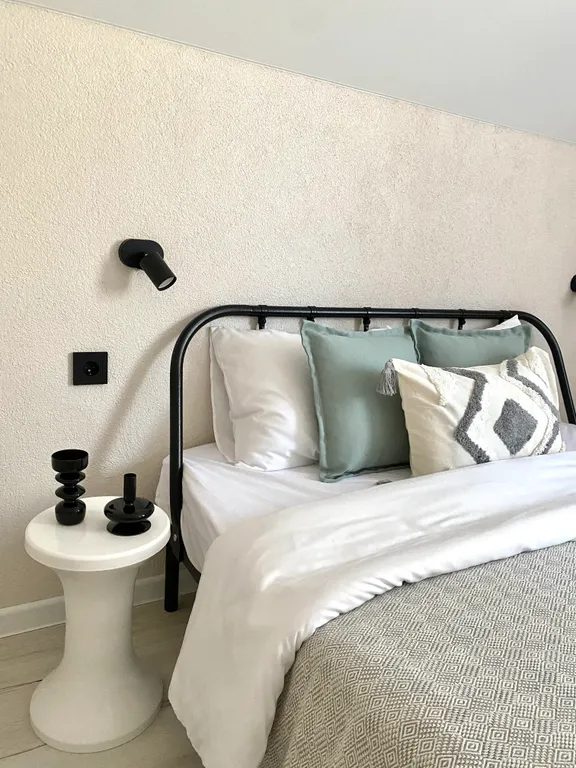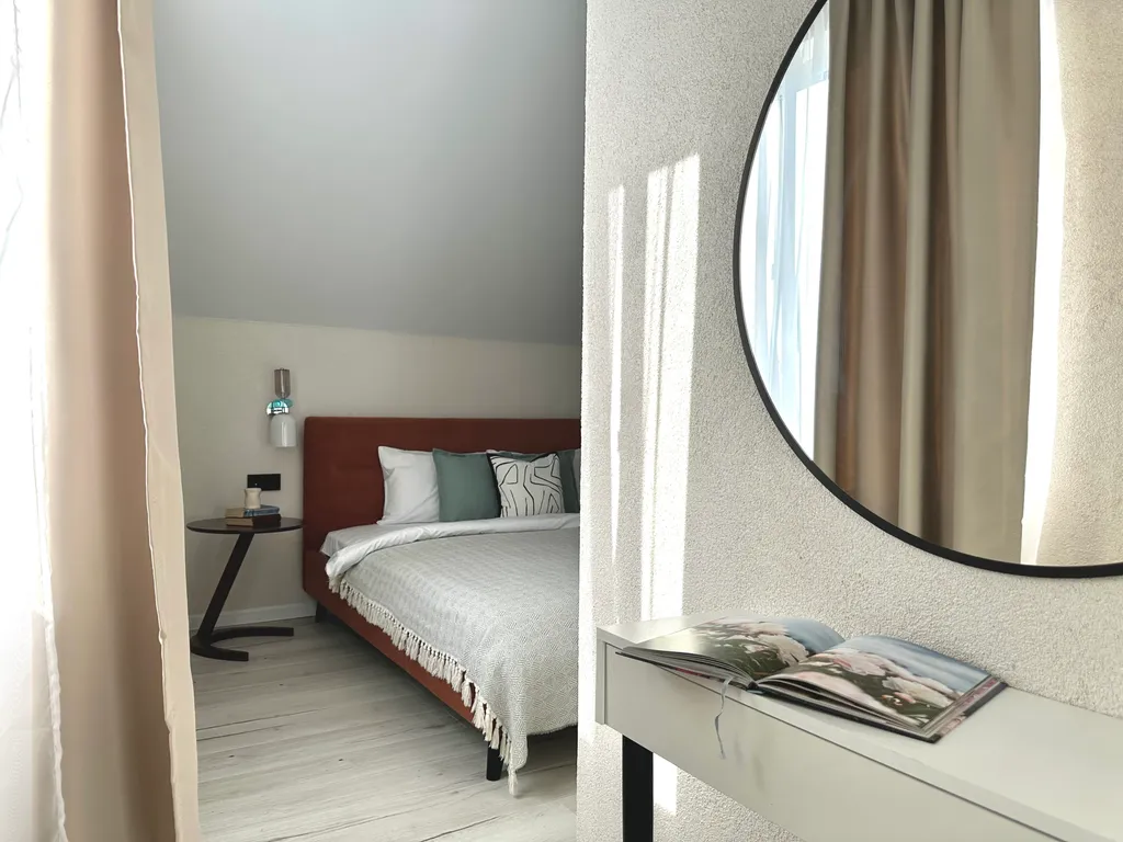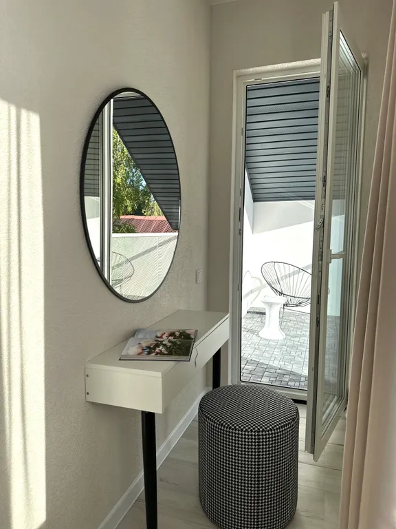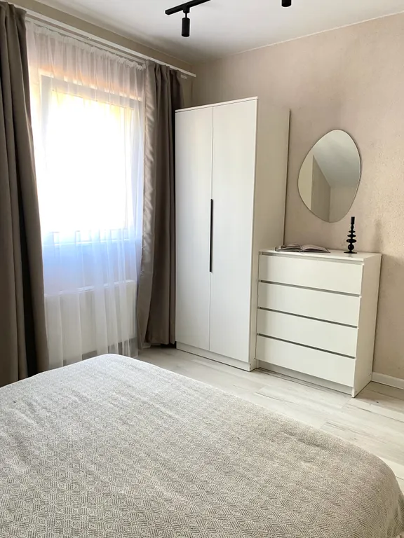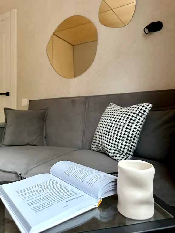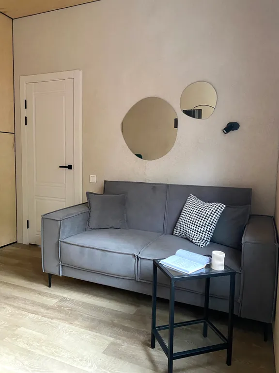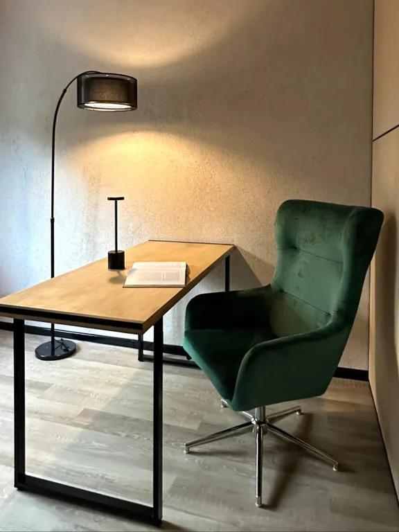 - 1 спальня-кабинет: диван раскладной, большой рабочий стол и удобное кресло.