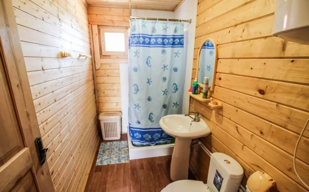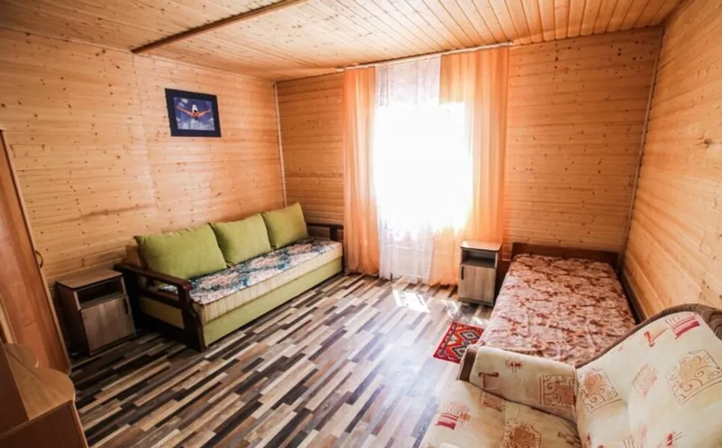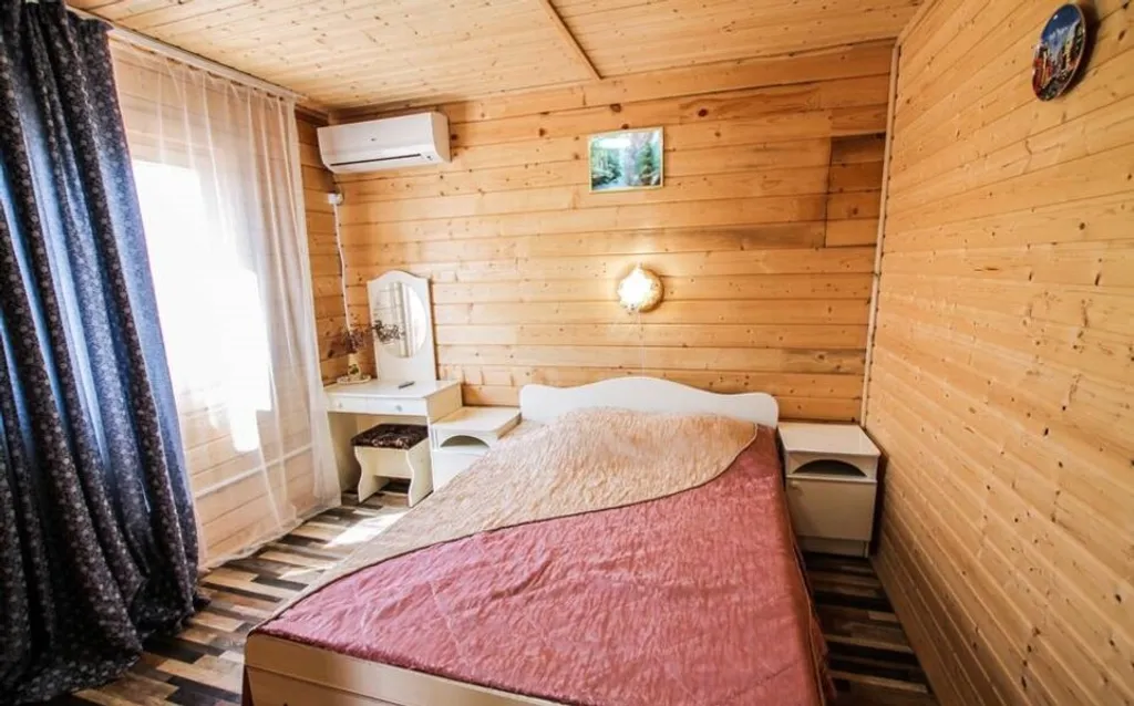 Для Вашего внимания предлагается Вилла 2-х этажная с мансардой и верандой, из чистого экологического дерева. Планировка гостевого дома следующая: при входе в наличии веранда, укомплектованная садовой мебелью, столом, внешней розеткой + раковина с «умывальником» для мытья посуды и рук. Сама Вилла состоит из мини-кухни, санузла с душевой кабиной, спальной комнаты на первом этаже и гостиной на втором этаже (мансарде). Кухня оснащена бытовой техникой (ЖК-телевизор, двухкамерный холодильник, электрический чайник, СВЧ-печь, а также электрическая плита, готовить разрешено), кухонным гарнитуром, обеденным столом и диваном (спальное место - только в одном домике). Комната отдыха на первом этаже укомплектована 2-у спальной кроватью, прикроватными тумбочками, ЖК-телевизором, шкафом для белья и вещей, системой кондиционирования- Сплит-система. Санузел и душевая кабина совмещена, вода в доме горячая и холодная бесперебойно. Поднимаясь по лестнице на второй этаж попадаем в гостиную( мансарда), которая укомплектована диваном (два спальных места), односпальной кроватью(в одном из гостевых домов) либо диваном (два спальных места), мебельным гарнитуром, ТВ-тумбой, ЖК-телевизором, системой кондиционирования(Сплит-система). Шикарный гостевой дом (2-х этажный сруб) для отдыха большой семьи в составе 6 человек. Мангальная зона вблизи Виллы, мангал предоставляем бесплатно, в том числе и парковочное место для автомобиля.