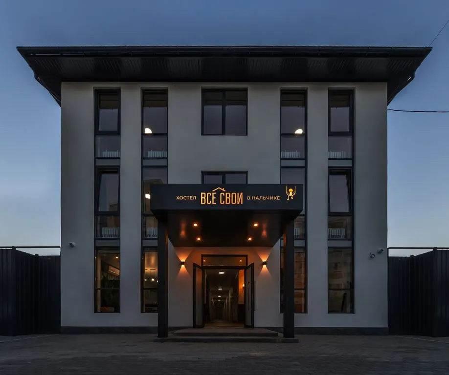 Наш хостел находится в центральной части города г. Нальчика, рядом с железнодорожным вокзалом, в шаговой доступности: торговый центр, Атажукинский Парк, центральная мечеть города. В хостеле 12 четырёхместных номера площадью 14 м2 с двухъярусными кроватями, 2 двухместных номера с двумя отдельно стоящими кроватями, 2 семейных номера площадью 11 м2 с двуспальной кроватью. Все кровати с ортопедическими матрасами фирмы Аскона и качественным хлопковым бельём. Каждое спальное место оснащено освещением, розеткой и полочкой. Для каждого гостя предусмотрен индивидуальный шкаф с замком. Система индивидуального отопления и накопители воды объёмом 3 т позволяют бесперебойно пользоваться благами цивилизации. На каждом этаже размещены санузлы с душевыми кабинами, отдельно женские и мужские. Кухня оборудована холодильником, микроволновой печью, электрическим чайником. В свободном доступе и безоплатно кофе, чай, сахар, хлопья каша быстрого приготовления. На территории хостела бесплатный wi-fi.